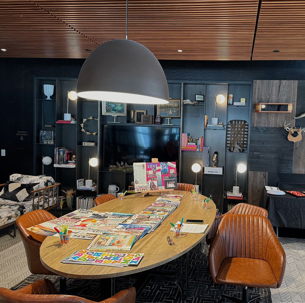 Albion Park, a luxury condominium in Oakbrook, Illinois, features a large window wall and two styles of shelving handmade by Wayward Machine Co.